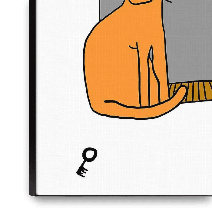 Bestelle dieses abstrakte Wandbild Katze schaut auf einen Schlüssel von Atmani Blok als Reproduktion auf Leinwand, Alu-Dibond, als Poster, Fototapete oder Acrylglasbild.