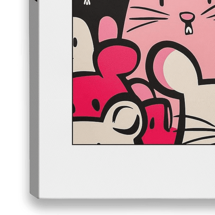 Dieses eindrucksvolle Triptychon mit dem Titel Cat Food ist eine Explosion von Farbe, Energie und Humor. Auf drei separaten Tafeln sind Hühner, Mäuse und Katzen auf spielerische und chaotische Weise dargestellt, jede in einer einzigartigen Mischung aus Cartoon, Pop-Art und Graffiti-Stil. Das Werk strahlt eine lebendige Dynamik aus und…