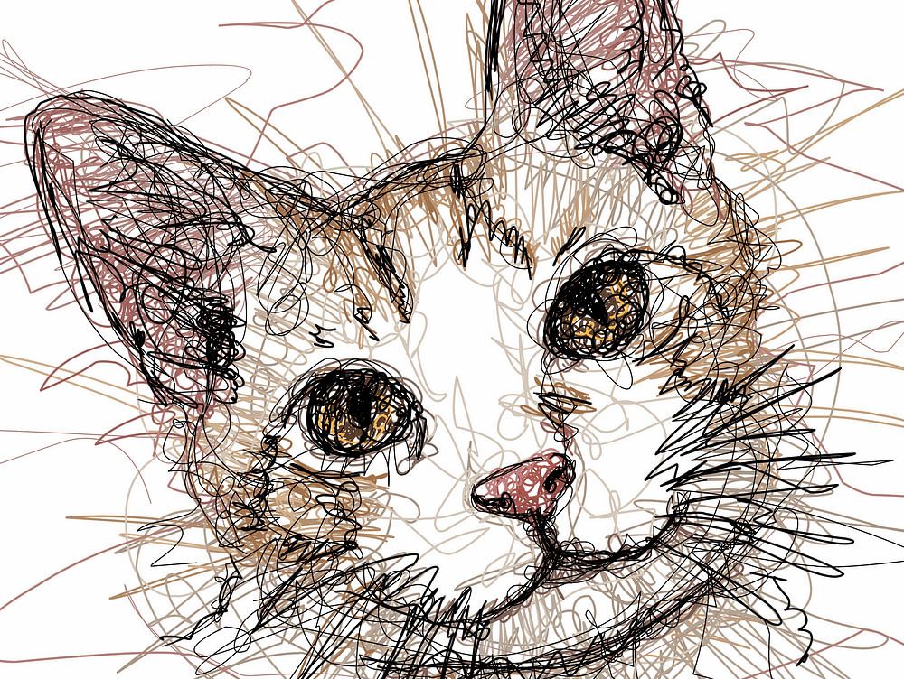 Gekritzelte digitale Zeichnung eines Katzengesichts