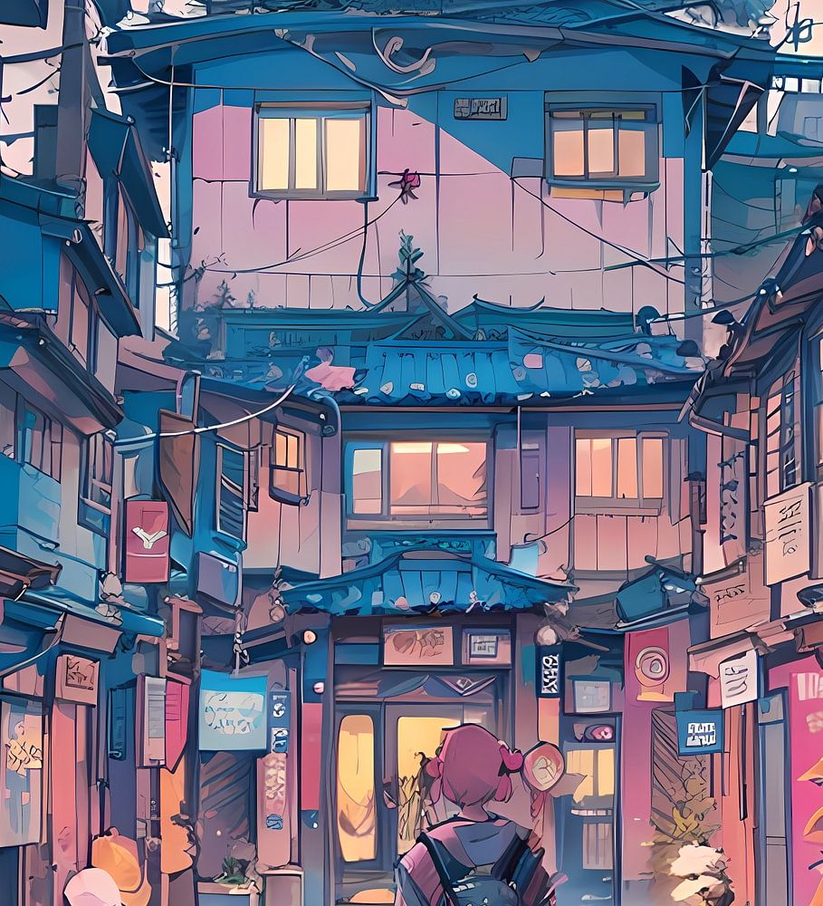 Japanische kawaii Straße Traum Pastell ästhetischen Stil