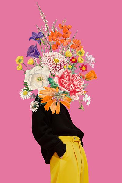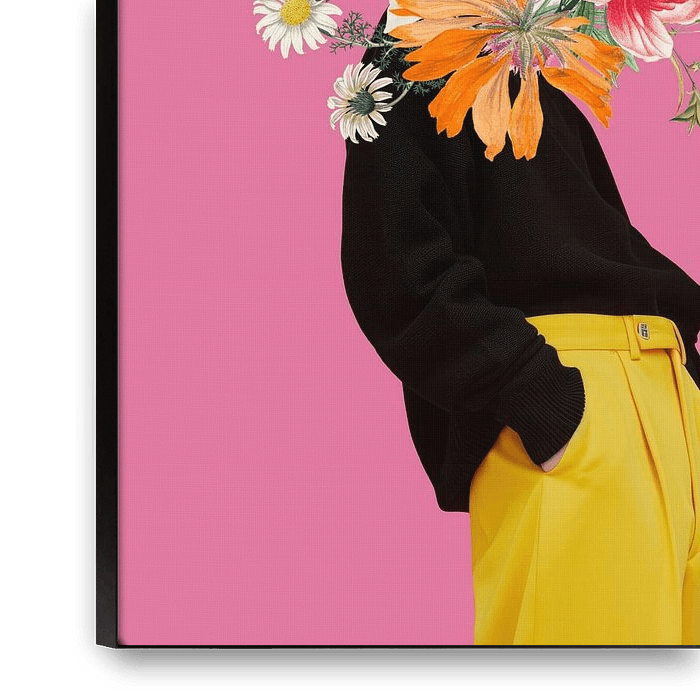 Ein lebendiger, verträumter und surrealistischer Stil, der eine kühne, moderne Ausstrahlung hat. Es kombiniert Vintage-Elemente mit einer zeitgenössischen Ästhetik.