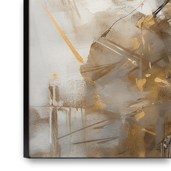 Abstraktes Porträt im Mixed-Media-Stil mit einer groben Grunge-Textur auf Leinwand in Beige- und Goldtönen.