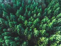 Kiefernwald im Winter, von oben gesehen, im Naturschutzgebiet Veluwe in der Nähe der Stadt Hattem in Gelderland, Niederlande. Geeignet als Natur-Hintergrundbild.
