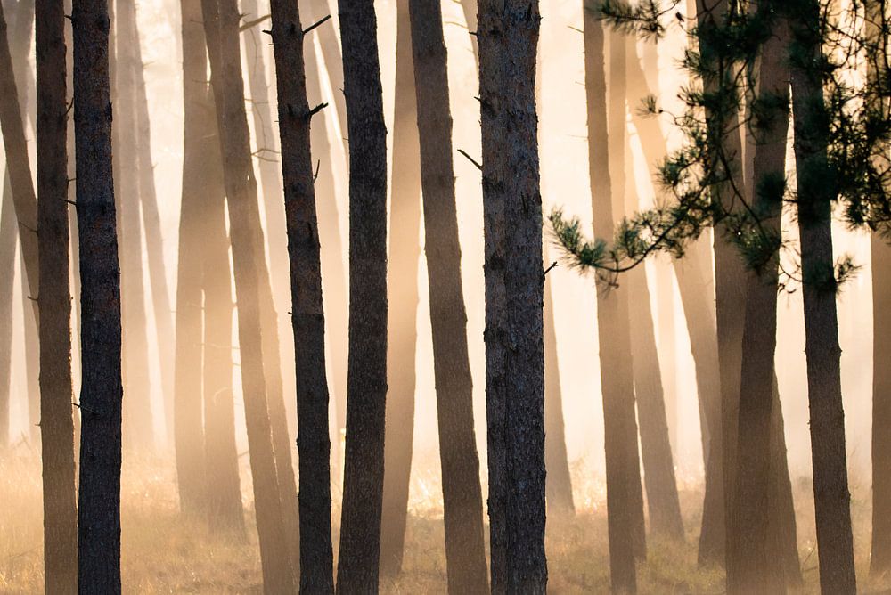 Der Brachterwald in Brüggen (D) verwandelt sich in einen Märchenwald, wenn die Sonne durch den Nebel bricht. Kontrast und Farbe kommen zusammen.