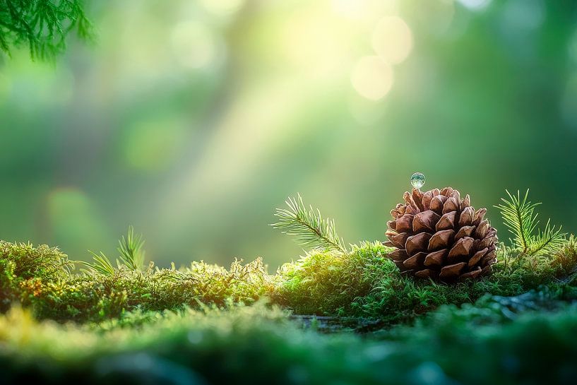 Bestelle das Foto Kieferzapfen im sanften Waldlicht von Poster Art Shop als Reproduktion auf Leinwand, Alu-Dibond, als Poster, Fototapete oder Acrylglasbild.