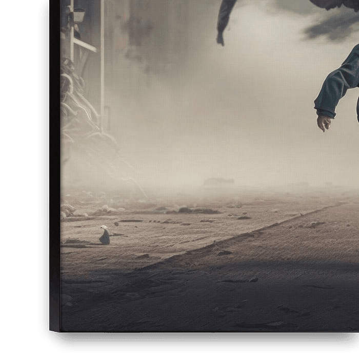 Dieses Kunstwerk zeigt einen kleinen Jungen, der mutig auf ein großes, technisches Monster zuläuft. Mit sanften Farben und einer quadratischen Form, die ihm einen raffinierten und modernen Look verleiht, ist dieses Kunstwerk eine einzigartige und beeindruckende Ergänzung für jedes geschäftliche oder private Umfeld. Es symbolisiert Mut,…