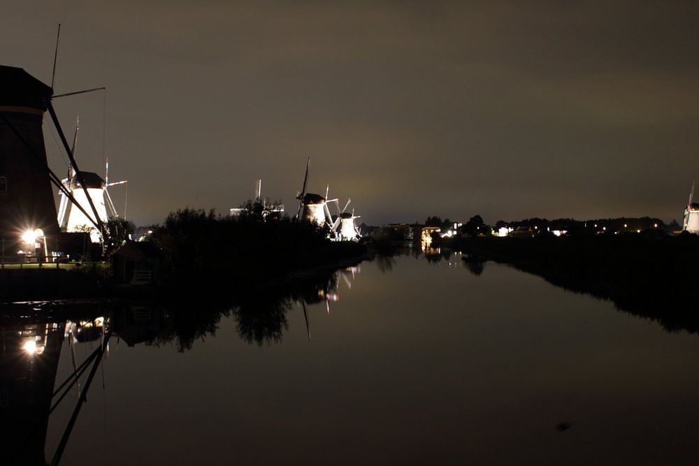 De wereldberoemde molens van het Werelderfgoed Kinderdijk worden 's avonds in de schijnwerpers gezet. De verlichting van het molencomplex van Werelderfgoed Kinderdijk zorgt voor een schitterend schouwspel