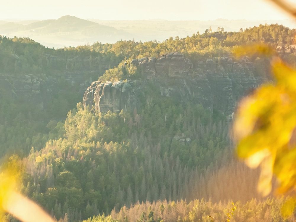 Der Schmilkaer Kessel bergaufwärts des namensgebenden Ortes ist ein breites grünes Tal, ein dichter Wald eingebettet zwischen hohen Felswänden. Teil dieser Formation sind zahlreiche Kletterfelsen und zwei der bekanntesten Stiegen des Elbsandsteingebirges: Die Rübezahl- und die Heilige Stiege im Heringsgrund. Zwar kann man die Stiegen vom Kipphorn nicht erkennen, der Blick in und über die Täler ist aber dennoch phänomenal.