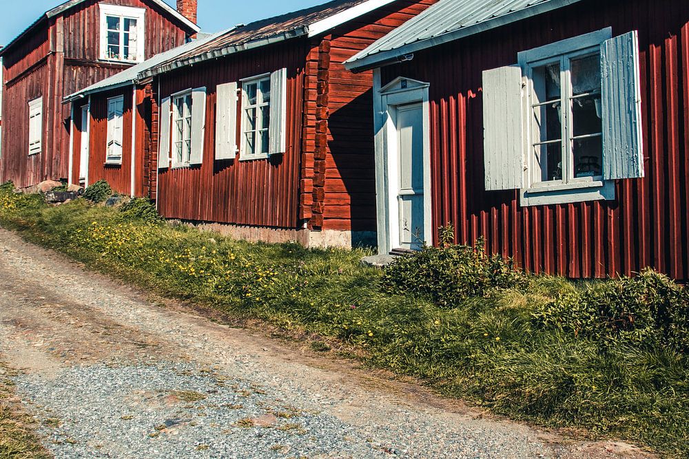 Kirchdorf Gammelstad in Schweden, bekannt für seine ikonischen roten Häuser.