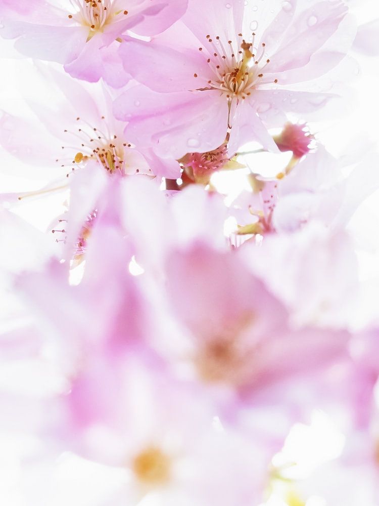 Die Kirschblüte ist bei jedem Wetter ein schöner Anblick im Frühling! Wenn man das Foto leicht überbelichtet, bleiben die hübschen rosa Farbtöne vor dem weißen Hintergrund gut sichtbar. Das gibt dem ganzen Bild eine etwas verträumte Atmosphäre.