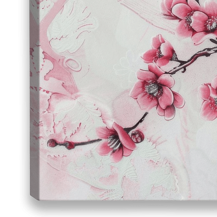 Dieses bezaubernde Kunstwerk zeigt eine wunderschöne Darstellung von Kirschblüten, die in voller Pracht erblühen. Die zarten Rosa- und Rottöne der Blüten kontrastieren harmonisch mit den dunklen Zweigen und dem sanften Hintergrund, wodurch eine ruhige und ästhetisch ansprechende Szene entsteht. Ideal für zen-inspirierte Räume und…