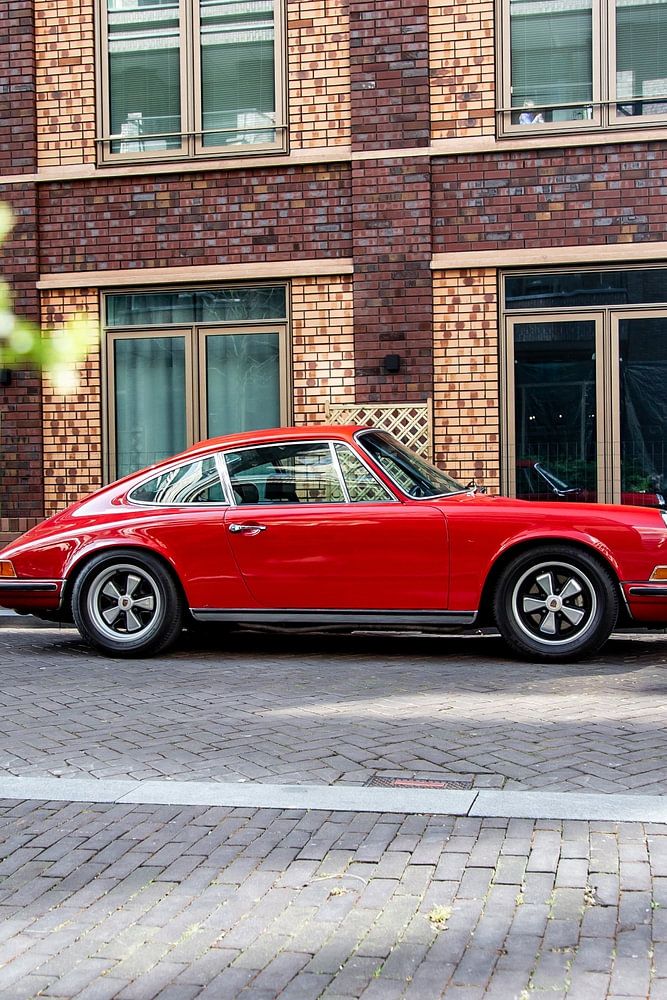 Ein klassischer roter Porsche 911 in Amsterdam.