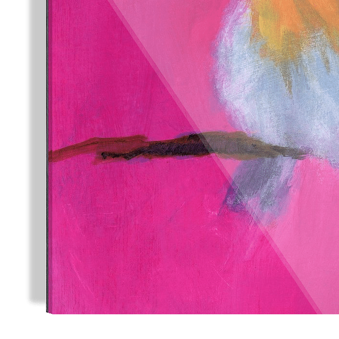 Kleines Rotkehlchen ist ein Acryl-Gemälde im quadratischen Format. Ein kleines fluffiges Rotkehlchen sitzt auf einem Zweig und schaut zur linken Seite. Der abstrakte Hintergrund leuchtet in kräftigen Pinktönen. Die Inspiration für dieses Bild war ein kleines Rotkehlchen, das im Winter unsere Futterstelle im Garten besuchte. Da es ein…