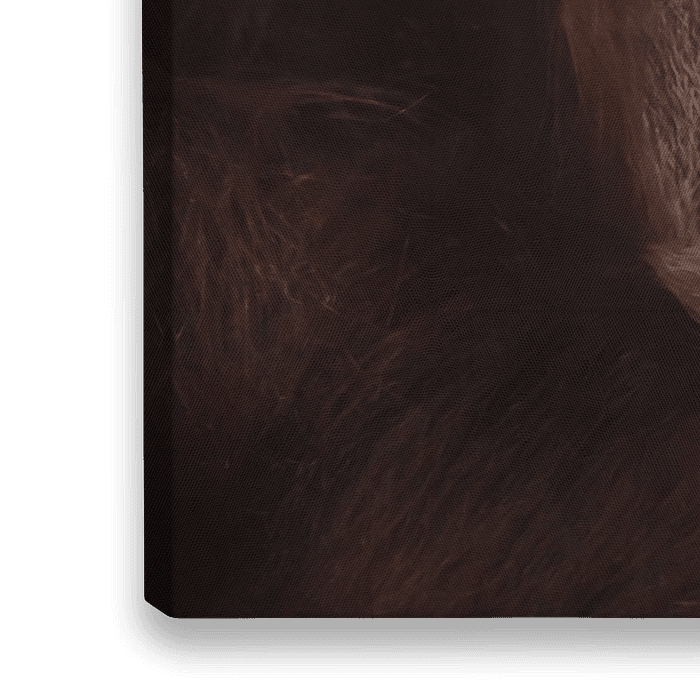 Bestelle das Foto Kluge Gesichts-Orang-Utan aus nächster Nähe. Phlegmatischer, leicht ironischer Blick von Michael Semenov als Reproduktion auf Leinwand, Alu-Dibond, als Poster, Fototapete oder Acrylglasbild.