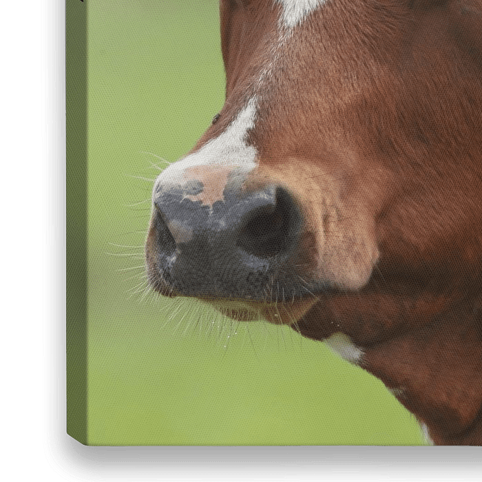 Een close up van een koe met een bruine kleur