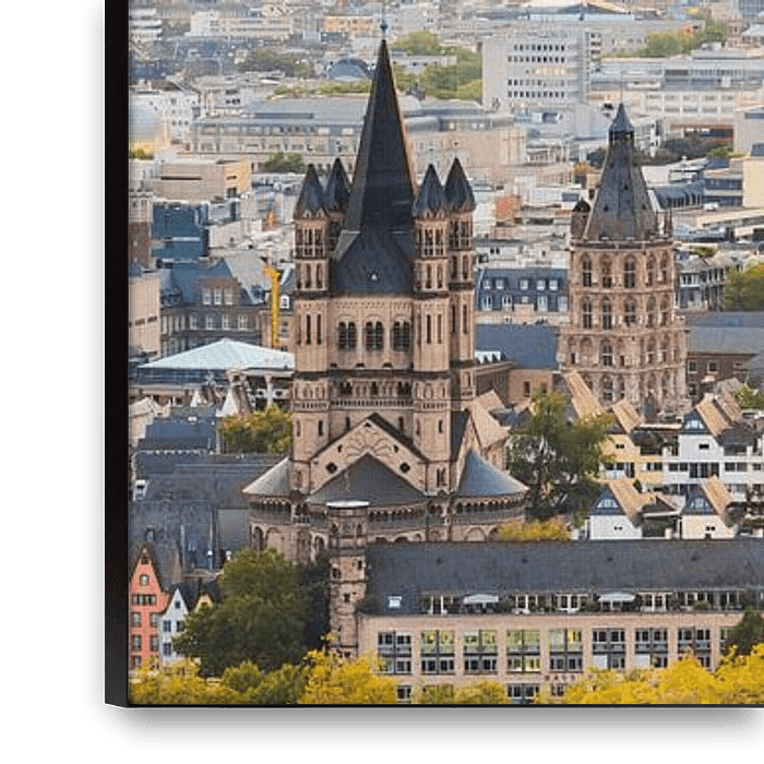 Bestelle das Foto Köln Panorama bei Sonnenuntergang von Günter Albers als Reproduktion auf Leinwand, Alu-Dibond, als Poster, Fototapete oder Acrylglasbild.