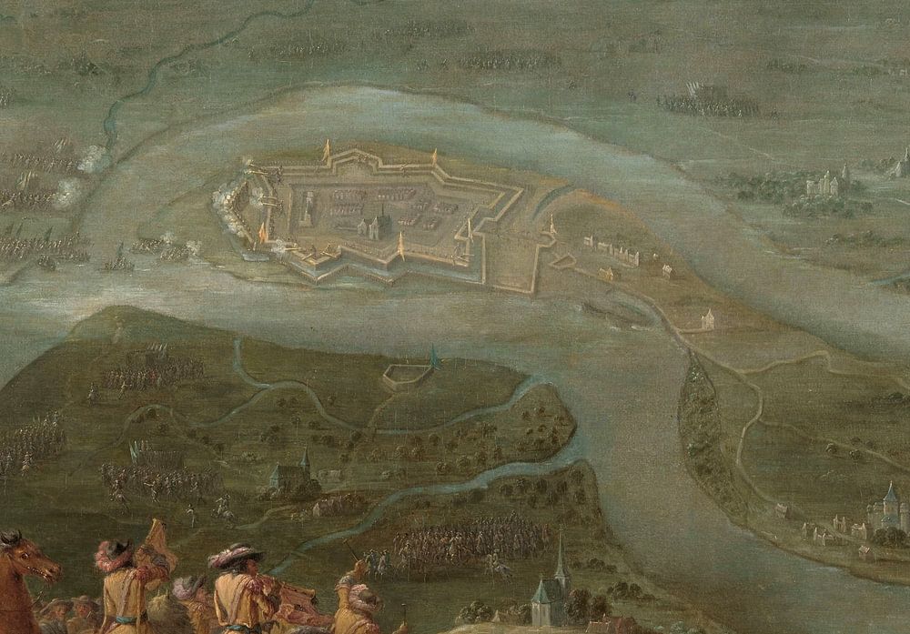König Ludwig XIV. und sein Gefolge bei der Belagerung von Schenkenschanz, Lambert de Hondt II (1672)