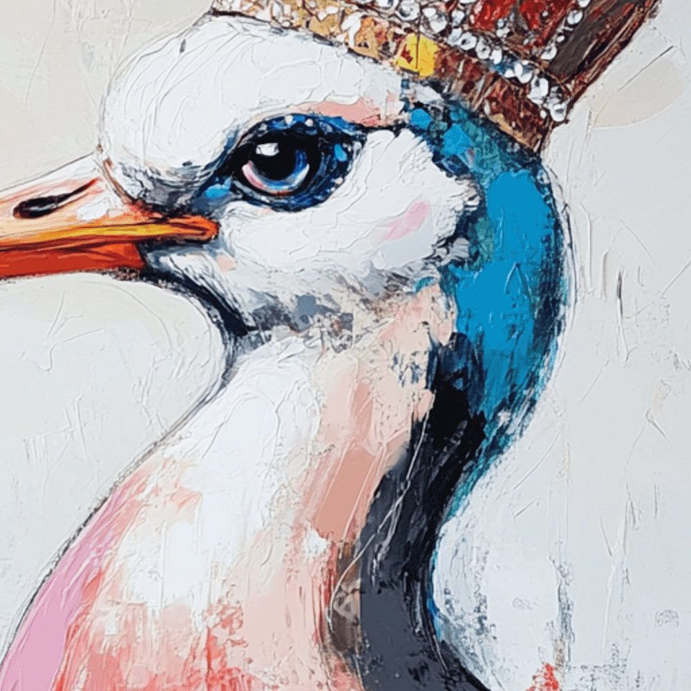 Dieser Pop-Art-Druck verbindet klassischen Charme mit modernem Flair und ist ideal, um eine triste Wand in einen echten Blickfang zu verwandeln. Dank der hohen Auflösung bleibt die Qualität dieses Digitaldrucks auch in größeren Formaten scharf und lebendig. Egal, ob Sie ein originelles Geschenk oder ein Kunstwerk für sich selbst suchen, dieser Pop-Art-Vogel mit Krone wird jedem Raum einen stilvollen und modernen Touch verleihen.