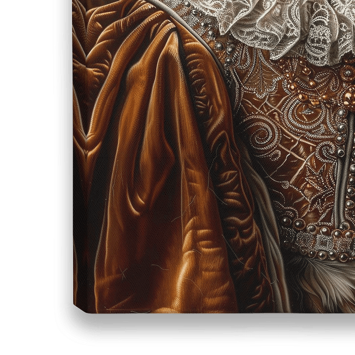 Bestelle dieses Porträt Königliche Katze im Barockgewand von Poster Art Shop als Reproduktion auf Leinwand, Alu-Dibond, als Poster, Fototapete oder Acrylglasbild.