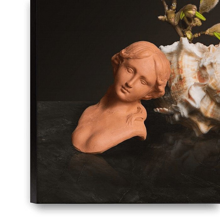 Ihre gewählte Kunst auf Leinwand, gespannt in einem Aluminiumrahmen. Schnell und einfach austauschbar für eine frische Ausstrahlung und ganz nach Ihren Wünschen.