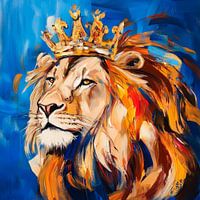 Majestätisch thront der Löwe im strahlenden Blau, seine goldene Mähne flutet wie eine königliche Aura um ihn. Die Krone auf seinem Haupt symbolisiert nicht nur Macht, sondern auch Anmut. Seine durchdringenden Augen strahlen Weisheit und Stärke aus, während der lebendige Pinselstrich das Bild mit Energie und Dynamik erfüllt. Ein wahrer…