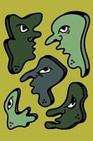 Bestelle dieses abstrakte Wandbild Köpfe Goldgrün von De Kunstwinkel als Reproduktion auf Leinwand, Alu-Dibond, als Poster, Fototapete oder Acrylglasbild.