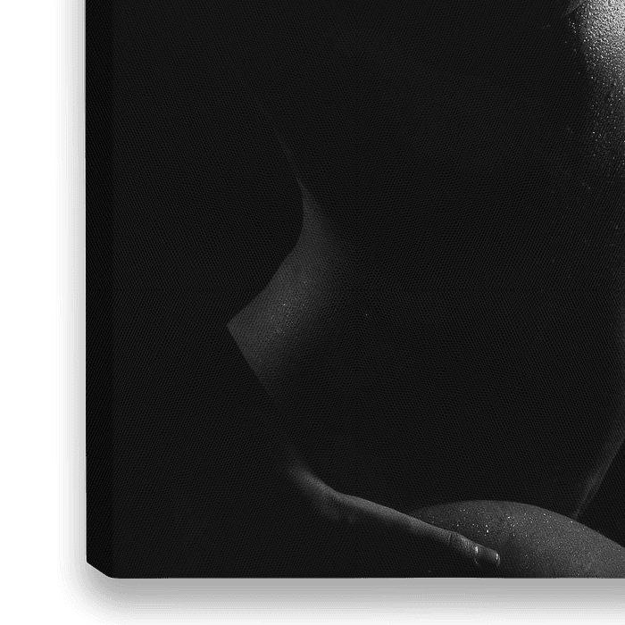 Schwarz-weiße Reproduktion eines weiblichen Körpers, verschwitzt und voller Leidenschaft