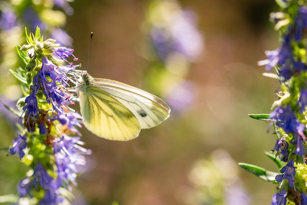 Wunderschöner Kohlweißling der den Nektar an einem Ysop in unserem Garten genießt.