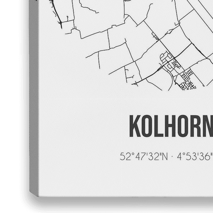 Bestelle dieses abstrakte Wandbild Kolhorn (Noord-Holland) | Karte | Schwarz und Weiß von Ortsdrucke als Reproduktion auf Leinwand, Alu-Dibond, als Poster, Fototapete oder Acrylglasbild.
