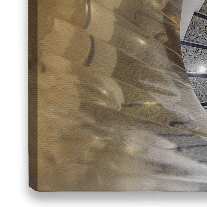 Bestelle dieses abstrakte Wandbild Komposition Nr. 7: Spindeltreppe in Grau und Gold von Rini Kools als Reproduktion auf Leinwand, Alu-Dibond, als Poster, Fototapete oder Acrylglasbild.