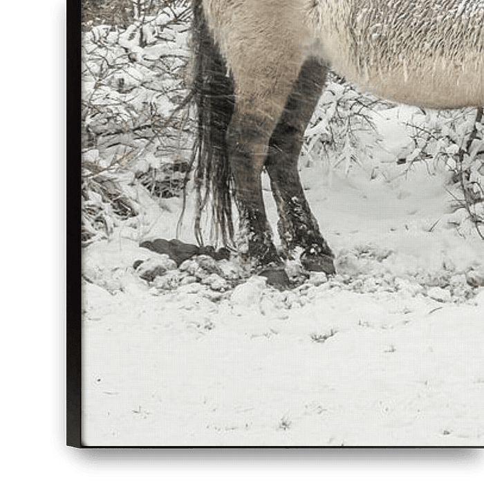 Bestelle dieses Landschafts-Wandbild Konik-Pferde im Schnee von Dirk van Egmond als Kunstdruck auf Leinwand, Alu-Dibond, als Poster, Fototapete oder Acrylglasbild.