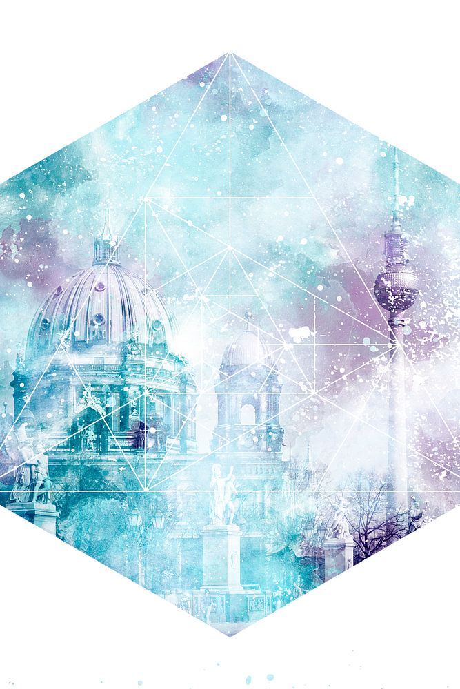 Der Berliner Dom und der Fernsehturm sind bekannte Sehenswürdigkeiten der deutschen Hauptstadt. Moderne Farbakzente und grafische Nuancen finden eine einzigartige Kombination. Knallige Wasserfarben unterstreichen die urbane Dynamik. Extravagante Impression in geometrischer Form mit Angabe der Koordinaten.