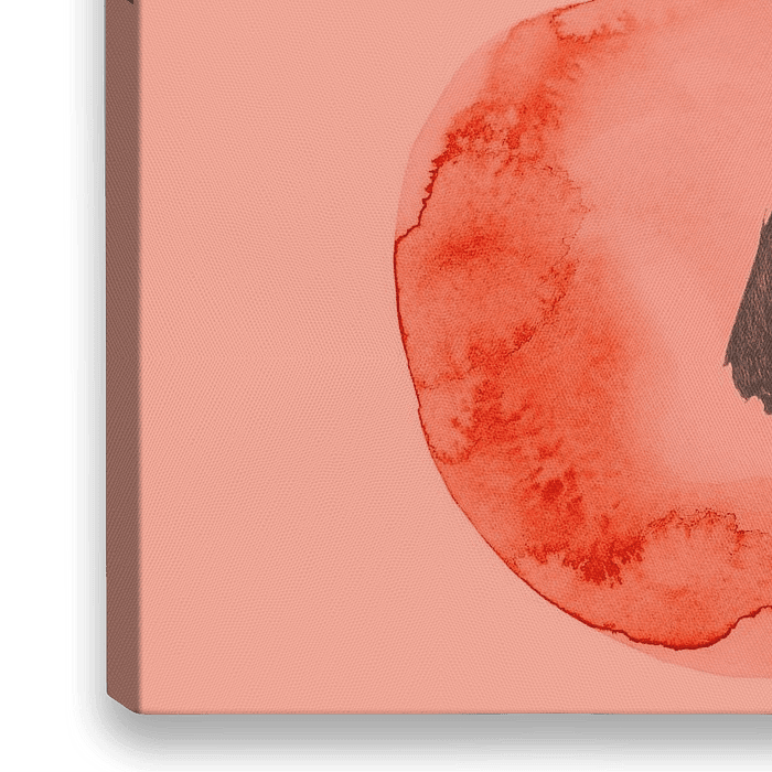 Eine abstrakt expressionistische Darstellung in warmen Farben auf angenehmem Pastell-Koralle im Skandinavischen Stil.