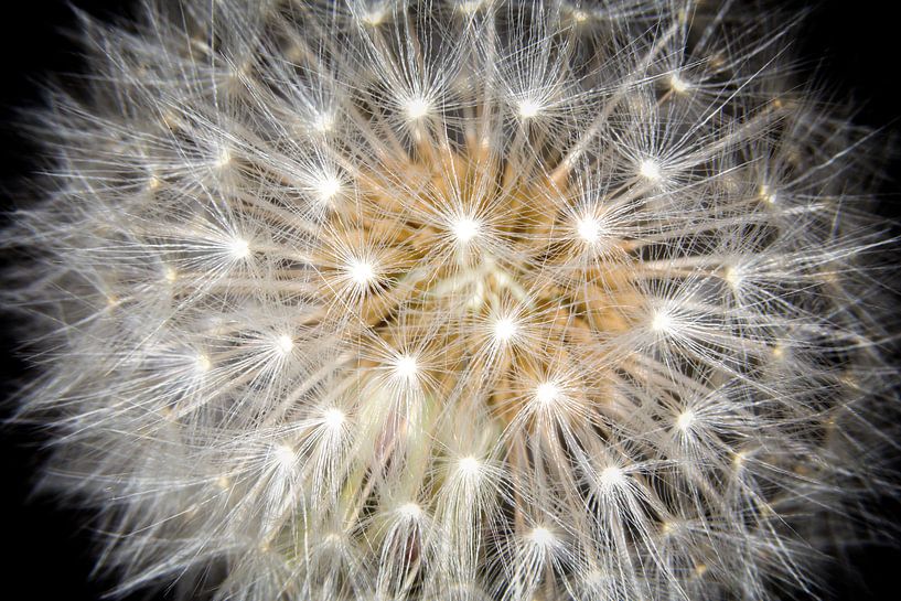 Ein Löwenzahn, der vor Leben explodiert. Sichtbar ist der Kern, aus dem die Samen herausfliegen. Ein Löwenzahn ist in der Tat ein Kompositum. Viele der flauschigen Samen sind befruchtete Blüten, die zu einer Frucht heranwachsen und vom Wind an einem Fallschirm fortgetragen werden. Die Frucht ist eine kleine Nuss, die zu einem neuen…