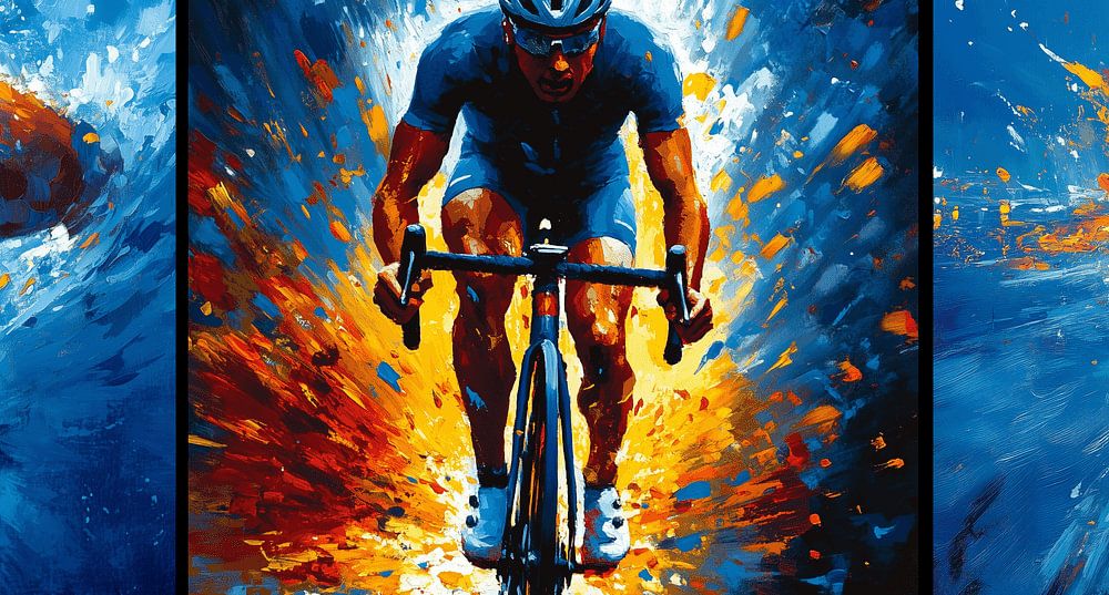 Erleben Sie die intensive Kraft und feurige Energie eines Triathlons, eingefangen in diesem fesselnden Kunstwerk. 'Power and Fire: Triathlon in Motion' zeigt die drei Disziplinen des Triathlons in einem lebendigen und dynamischen Stil. Jedes Bild ist eine Explosion von Farben und Bewegungen, die die Anstrengung und das Engagement der Athleten hervorhebt.