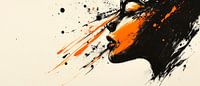 Ein kraftvolles Porträt, das mit dynamischen Farbklecksen spielt, weckt Emotionen und Kreativität. Die meisterhaft umgesetzte Kombination aus Schwarz und leuchtendem Orange strahlt Energie aus und zieht den Blick an. Ideal für ein Wohnzimmer, wo es Gespräche anregen und eine inspirierende Atmosphäre schaffen kann.