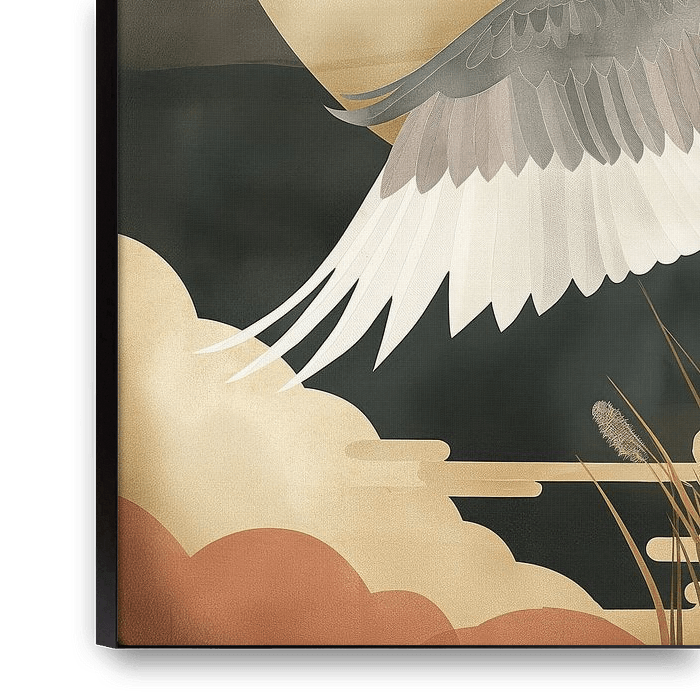 Bestelle dieses Vögel Wandbild Kran japandi von Bert Nijholt als Reproduktion auf Leinwand, Alu-Dibond, als Poster, Fototapete, ArtFrame oder Acrylglasbild, maßgefertigt in höchster Qualität.