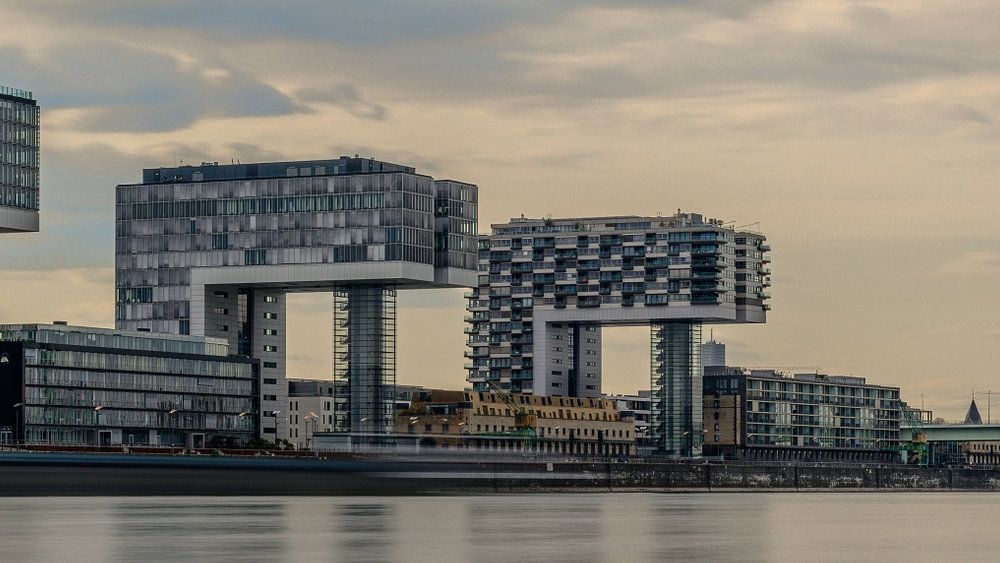 Die Kranhäuser in Köln und im Hintergrund den Kölner Dom