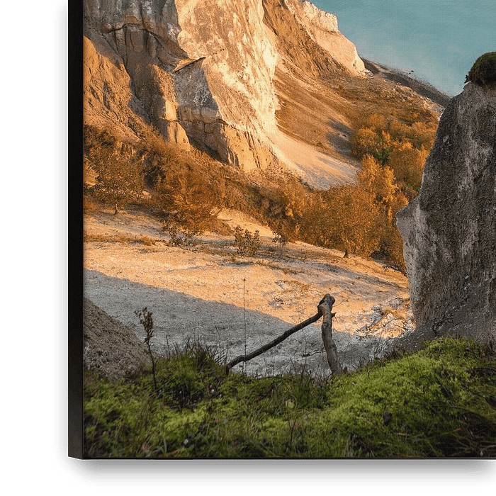 Ihre gewählte Kunst auf Leinwand, gespannt in einem Aluminiumrahmen. Schnell und einfach austauschbar für eine frische Ausstrahlung und ganz nach Ihren Wünschen.