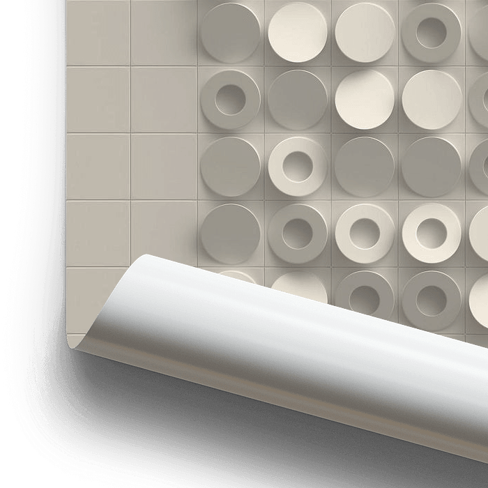 Viele Kacheln mit unterschiedlichen Kreisen bilden eine Relief-Optik.