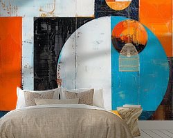 Dieses beeindruckende Bild zeigt eine harmonische Anordnung von Kreisen und Farbflächen in warmen und kühlen Tönen. Die Kombination aus strengen geometrischen Formen und lebhaften Farben verleiht dem Kunstwerk eine zeitgenössische und energiegeladene Ausstrahlung. Perfekt für Liebhaber von abstrakter Kunst und moderner Dekoration, bringt dieses Werk eine kreative und dynamische Note in Ihr Zuhause. Ideal für Wohnzimmer oder Büros, es ist eine markante Ergänzung für jede Kunstsammlung.