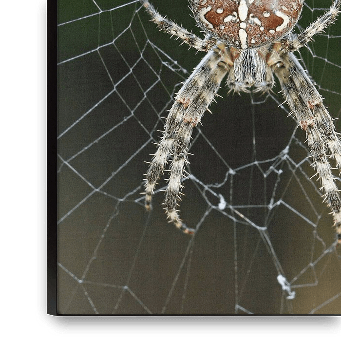 Makrofoto einer Gartenspinne in einem Netz. Durch Makroaufnahmen sind Details des Tieres deutlich sichtbar.