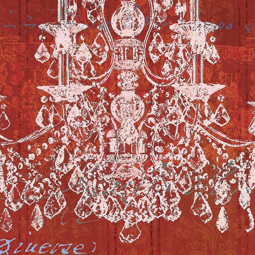 Bei fast allen meinen Arbeiten beginne ich zunächst manuell mit einer Skizze, dann erst gestalte ich den Hintergrund. Ich habe den Kronleuchter separat gezeichnet und ihn dann digital in hellen und dunklen Farben über den Hintergrund gelegt, um diesen grafischen Effekt zu erzielen. Und dann werden die Bilder digital nachbearbeitet für die Reproduktion von Work on the wall