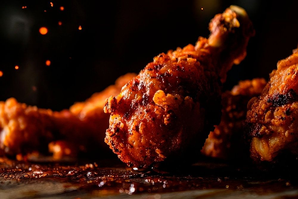 Saftige, goldbraun gebratene Hähnchenkeulen, umhüllt von einem glühenden Glanz, laden den Betrachter ein, sich in die Welt der Aromen zu träumen. Der rustikale Holzuntergrund ergänzt die herzliche Atmosphäre und macht dieses Kunstwerk ideal für die Küche, wo Genuss und Geselligkeit zu Hause sind. Ein echter Appetitanreger für jeden Kochliebhaber!