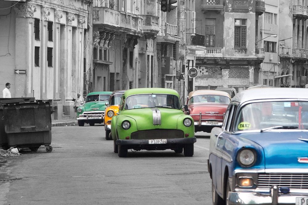 Kuba künstlerisches Schwarz-Weiß mit farbigen Autos