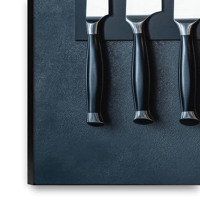 Klingen in perfekter Ordnung, jede mit ihrer eigenen Geschichte und Bestimmung. Dieses Ensemble strahlt sowohl Präzision als auch Handwerkskunst aus und entfaltet einen Hauch von Raffinesse. Ideal für die Küche, wo jeder Schnitt inspiriert und die Leidenschaft fürs Kochen entfacht. Ein wahrer Blickfang für Gourmet-Liebhaber!