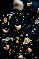 Diese dynamische Komposition fängt den Moment der Bewegung und Energie ein, während zarte Knoblauchzehen und Schalen durch die Luft wirbeln. Die kontrastreiche Darstellung und die spektakulären Details verleihen jedem Raum eine lebendige Note. Ideal für die Küche, wo Kreativität und Genuss zu Hause sind, inspiriert sie beim Kochen zu…