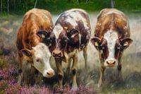 Bestelle dieses Kuh-Wandbild Kühe auf den Heideflächen von Marjolein Deelen als Reproduktion auf Leinwand, Alu-Dibond, als Poster, Fototapete oder Acrylglasbild.