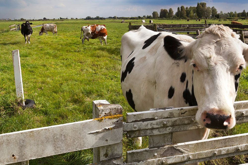 Polderlandschaft mit Kühen auf der Wiese in den Niederlanden