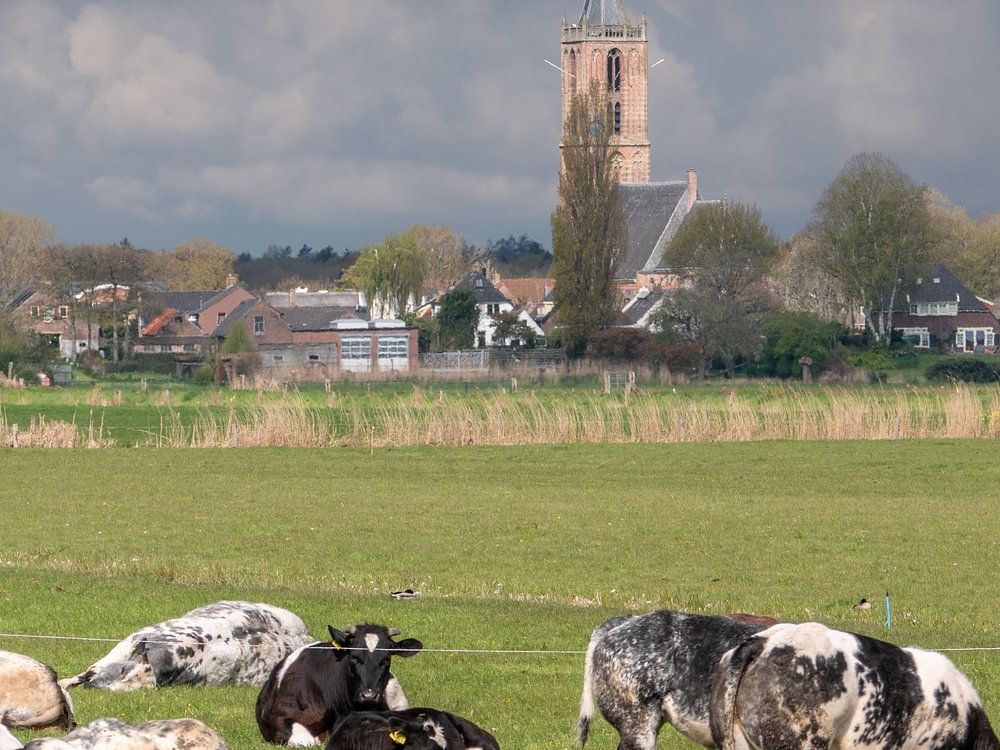 Kühe auf der Wiese mit der Kirche von Eemnes von Robin Jongerden